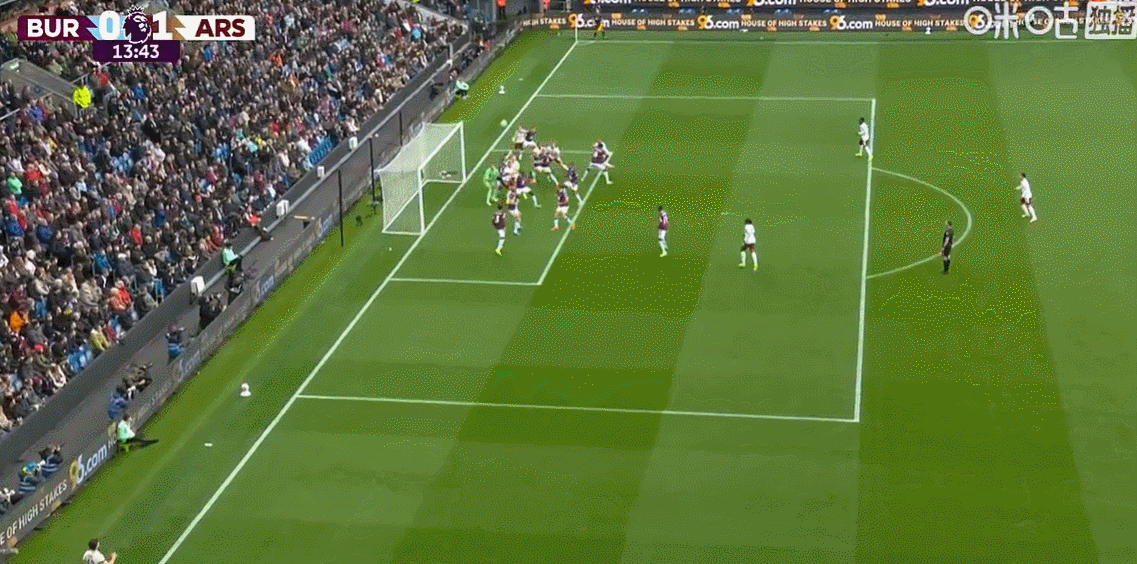 阿森纳前10轮通过角球攻入8球,成英超历史首支球队